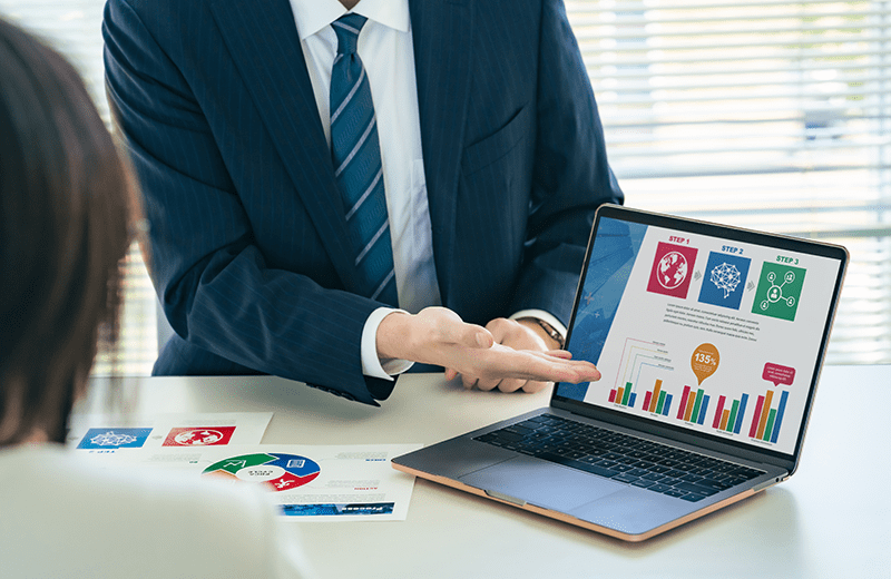 提案書やプレゼンでは、お客様の視点を大切にし、内容が明確に伝わるよう努めます。