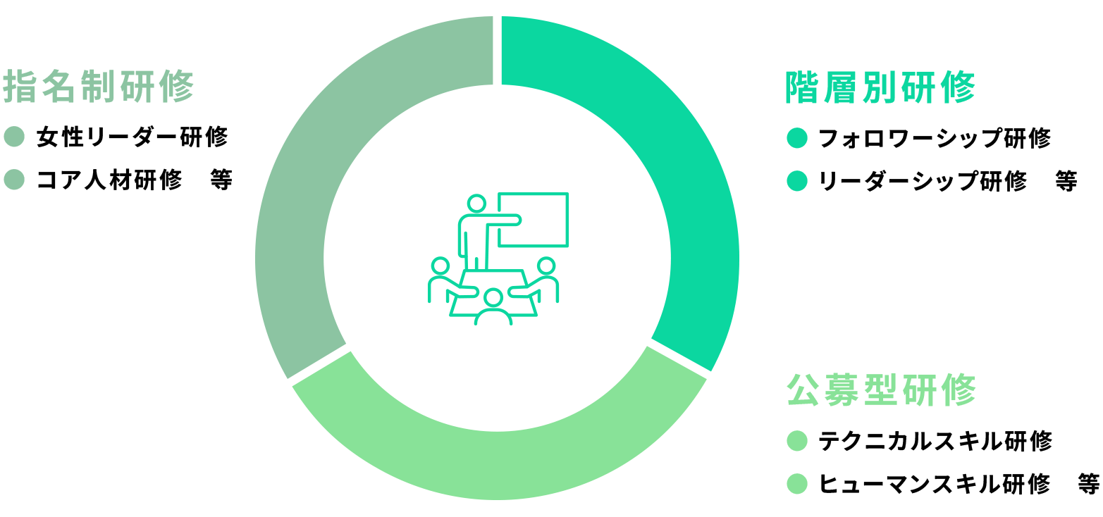 ライフステージに応じ立ち止まり、キャリアについて考える機会として各種キャリア研修を提供します。