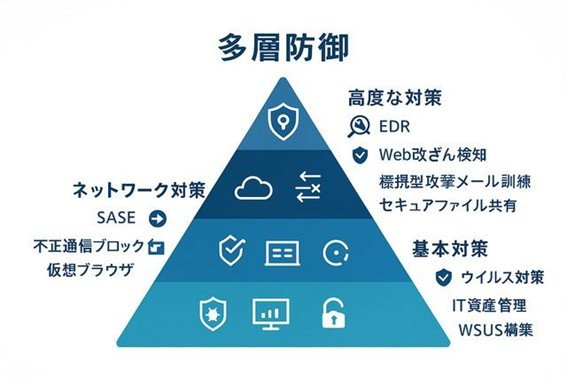 予防・検知・対応の各段階で適切なソリューションを導入することが重要です。