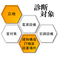 IT機器設置状況について継続稼働に対する安全性診断を行い、内在化する課題・問題提起まで実施するサービスです。