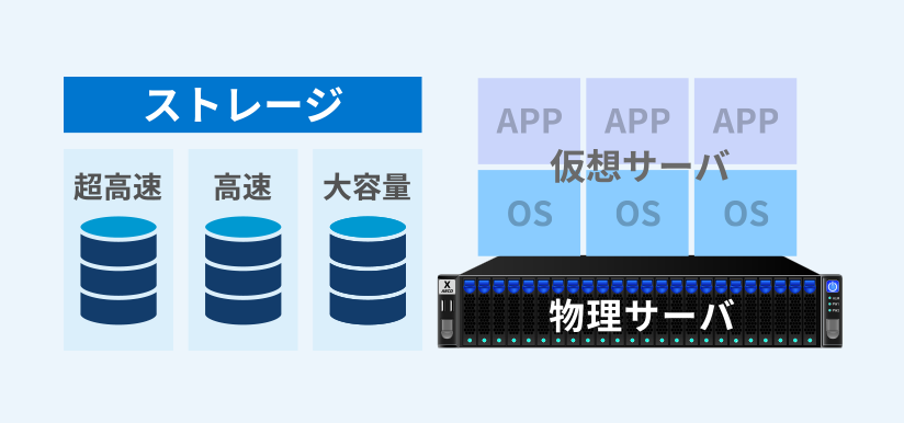 物理サーバ、ネットワーク、ストレージは完全に冗長化されています。超高速、高速、大容量の3種のストレージから、お客さまの用途に合ったものをご選択いただけます。