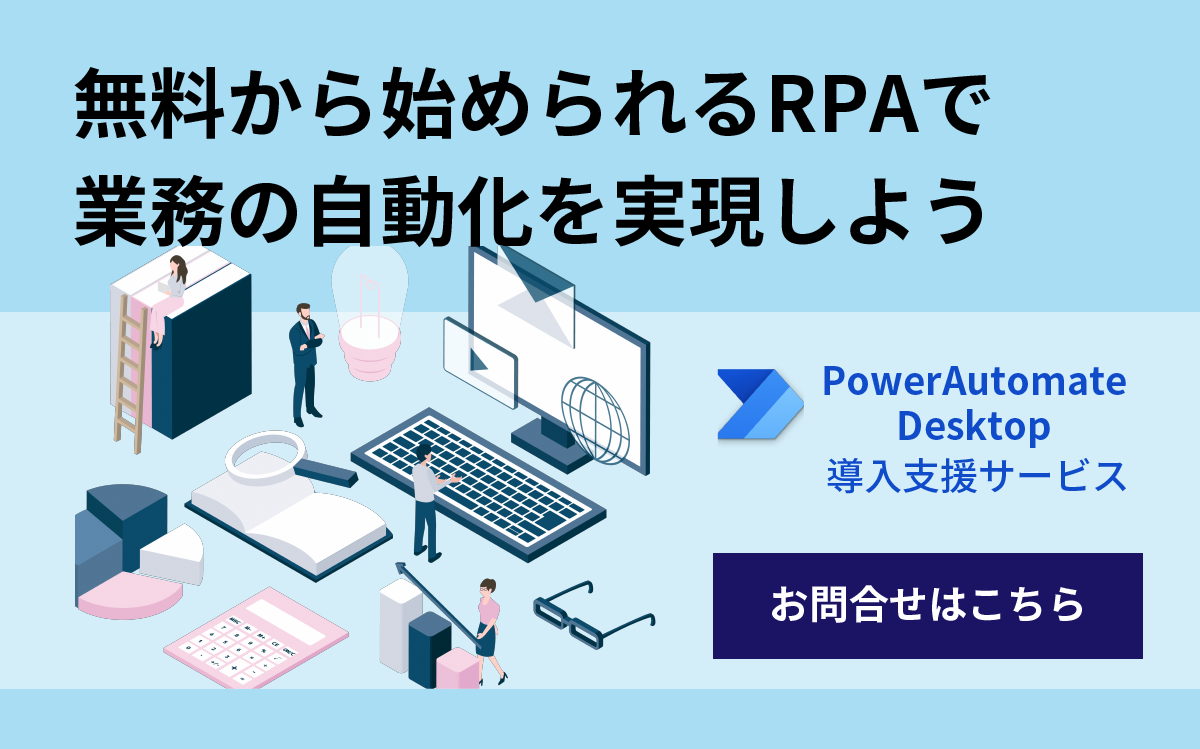 PowerAutomateDesktop導入検討や運用を行うにあたり、発生する様々な課題について当社RPA技術者がご支援いたします。要件の整理や導入の進め方、フロー等の作成支援、運用サポートなど各フェーズで柔軟なご支援が可能ですので、お気軽にご相談ください。