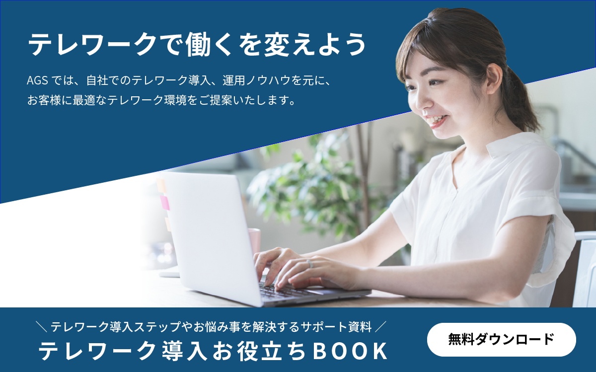 AGSでは、自社のテレワーク導入、運用ノウハウを元に、お客様に最適なテレワーク環境をご提案いたします。